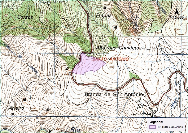 This project site is a community land (Santo António), situated in the parish of Tangil, Monção, district of Viana do Castelo. This mountain site is predominantly covered with spontaneous vegetation (gorse, fern and scotch broom).